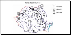 Debitele au fost, în general, staționare, exceptând râurile din bazinele Siret şi Prut unde au fost în general în scădere.