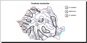 Debitele au fost în general în scădere, exceptând râurile din bazinele hidrografice: Iza, Tur, Crasna, Barcău, Crișul Repede, Bega Veche, Bega, Moravița, Bârzava, Caraș, Jiu, Vedea, Neajlov, Bârlad, bazinul superior și mijlociu al Crișului Alb și pe cele din Dobrogea, unde au fost relativ staționare.
