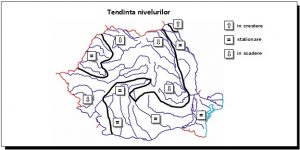 Debitele au fost, în general, în scădere, exceptând râurile din bazinele hidrografice: Crasna, Barcău, Crișuri, Jiu, Vedea, Ialomița, Bârlad, bazinele mijlocii și inferioare ale Oltului și Argeșului, afluenții Prutului, cursul mijlociu și inferior al Prutului și râurile din Dobrogea, unde au fost relativ staționare.