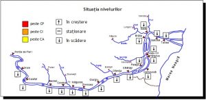În aval de Porţile de Fier debitele vor fi în scădere, exceptând ultimele zile ale intervalului, când vor fi în creștere pe sectorul Gruia – Tr. Măgurele.