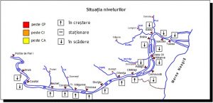 În aval de Porțile de Fier, debitele au fost în scădere pe sectoarele Gruia – Calafat şi Cernavodă – Tulcea și în creştere pe sectorul Bechet – Călăraşi.
