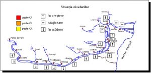 În aval de Porţile de Fier, debitele vor fi în general în scădere, exceptând primele zile ale intervalului, când vor fi în creștere pe sectorul Călărași – Tulcea și ultima parte a intervalului, când vor fi relativ staționare pe sectorul Gruia – Giurgiu.
