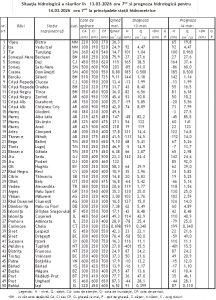 Debitele vor fi, în general, relativ staționare, exceptând râurile din bazinul hidrografic Vedea, bazinele inferioare ale Argeșului și Ialomiței și cursul superior al Prutului, unde vor fi în scădere.Sunt posibile creșteri izolate de niveluri și debite pe unele râuri mici din zonele de deal și de munte, ca urmare a cedării apei din stratul de zăpadă.Formațiunile de gheață (gheață la maluri) existente se vor menține fără modificări importante.Nivelurile pe râuri la stațiile hidrometrice se vor situa sub COTELE DE ATENȚIE.