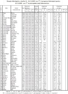 Prognoza hidrologică pentru râuri în intervalul 22.12.2025 ora 07.00 – 23.12.2025 ora 07.00