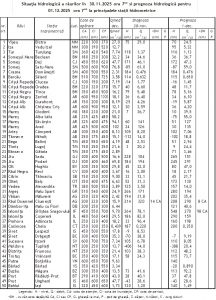 Prognoza hidrologică pentru râuri în intervalul 30.11.2025 ora 07.00 – 01.12.2025 ora 07.00
