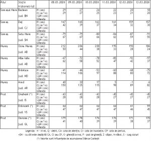 Prognoza medie durată râuri în intervalul 07.03.2026 ora 07.00 – 13.03.2026 ora 07.00