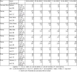 Prognoza medie durată râuri în intervalul 07.04.2026 ora 07.00 – 13.04.2026 ora 07.00