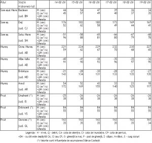 Debitele medii zilnice vor fi, în general, în creștere, ca urmare a precipitațiilor prognozate, cedării apei din stratul de zăpadă, evoluției formațiunilor de gheață și propagării, exceptând prima zi a intervalului de prognoză unde pe râurile din sudul și estul țării vor fi relativ staționare.