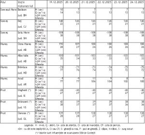 Prognoza medie durată râuri în intervalul 18.12.2025 ora 07.00 – 24.12.2025 ora 07.00