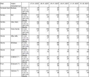 Debitele medii zilnice vor fi, în general staționare, exceptând în primele două zile ale intervalului de prognoză, cursurile mijlocii şi inferioare ale râurilor mari din nord-vestul şi ale afluenților de dreapta ai Siretului, unde vor fi în creştere ca urmare al efectului combinat al cedării apei din stratul de zăpadă, evoluției formațiunilor de gheață şi propagării.