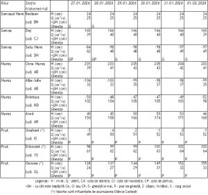 Prognoza medie durată râuri în intervalul 26.01.2026 ora 07.00 – 01.02.2026 ora 07.00