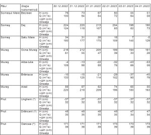 Prognoza medie durata rauri în intervalul 29.12.2022 ora 07.00 – 04.01.2023 ora 07.00