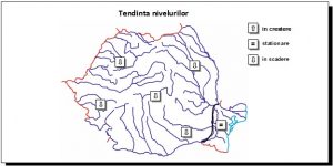 Debitele au fost în general în scădere, exceptând râurile din Dobrogea, unde au fost relativ staționare.
