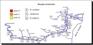 În aval de Porţile de Fier, debitele vor fi în scădere, exceptând partea a doua a intervalului de prognoză, când vor fi în creștere pe sectorul Gruia – Călărași și relativ staționare pe sectorul Cernavodă – Tulcea.