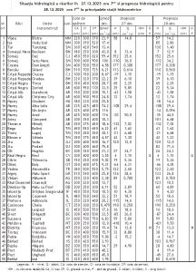 Prognoza hidrologică pentru râuri în intervalul 27.12.2025 ora 07.00 – 28.12.2025 ora 07.00