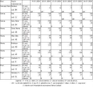 Prognoza medie durată râuri în intervalul 18.01.2026 ora 07.00 – 24.01.2026 ora 07.00